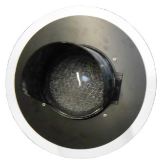 Le feu est logé dans un boîtier en polycarbonate noir, un matériau solide et durable. Il est équipé de LEDs rouges haute intensité pour une excellente visibilité, même à grande distance. D’un diamètre de 490 mm, il est encadré par un listel blanc de 30 mm sur une tôle de contraste noire, assurant une parfaite lisibilité.